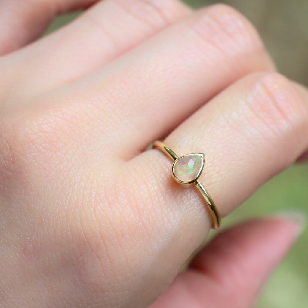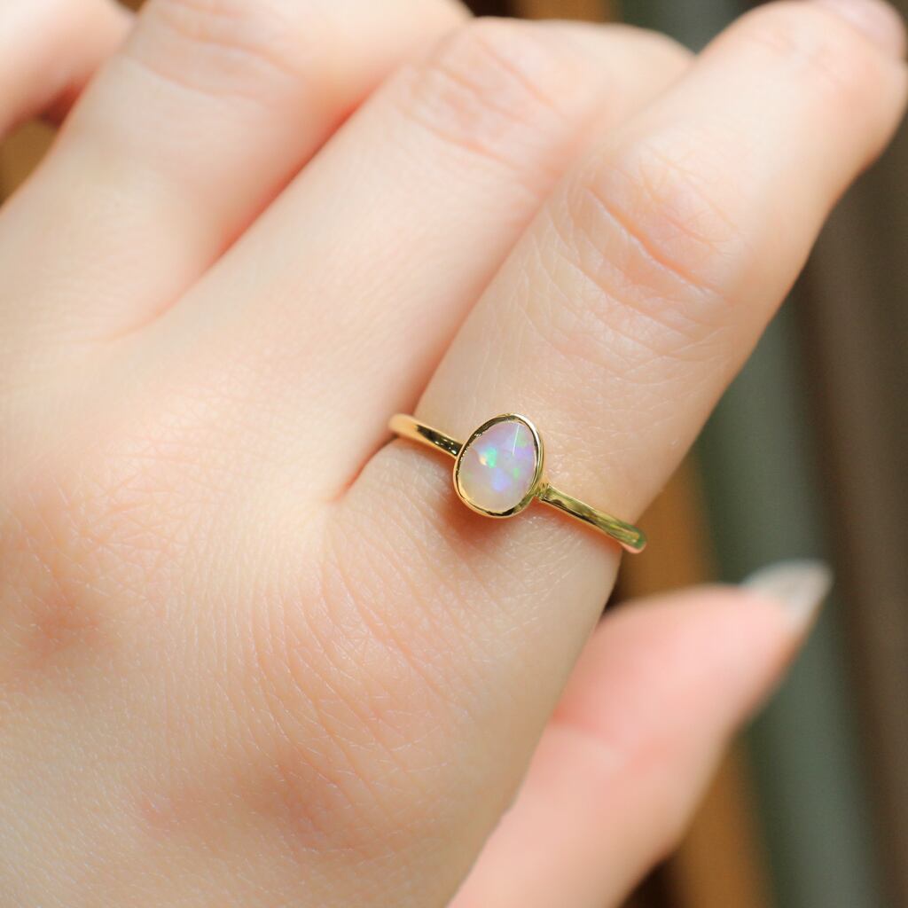 遊色効果が人気のエチオピアンオパールを職人の手仕事で包み込んだリング。