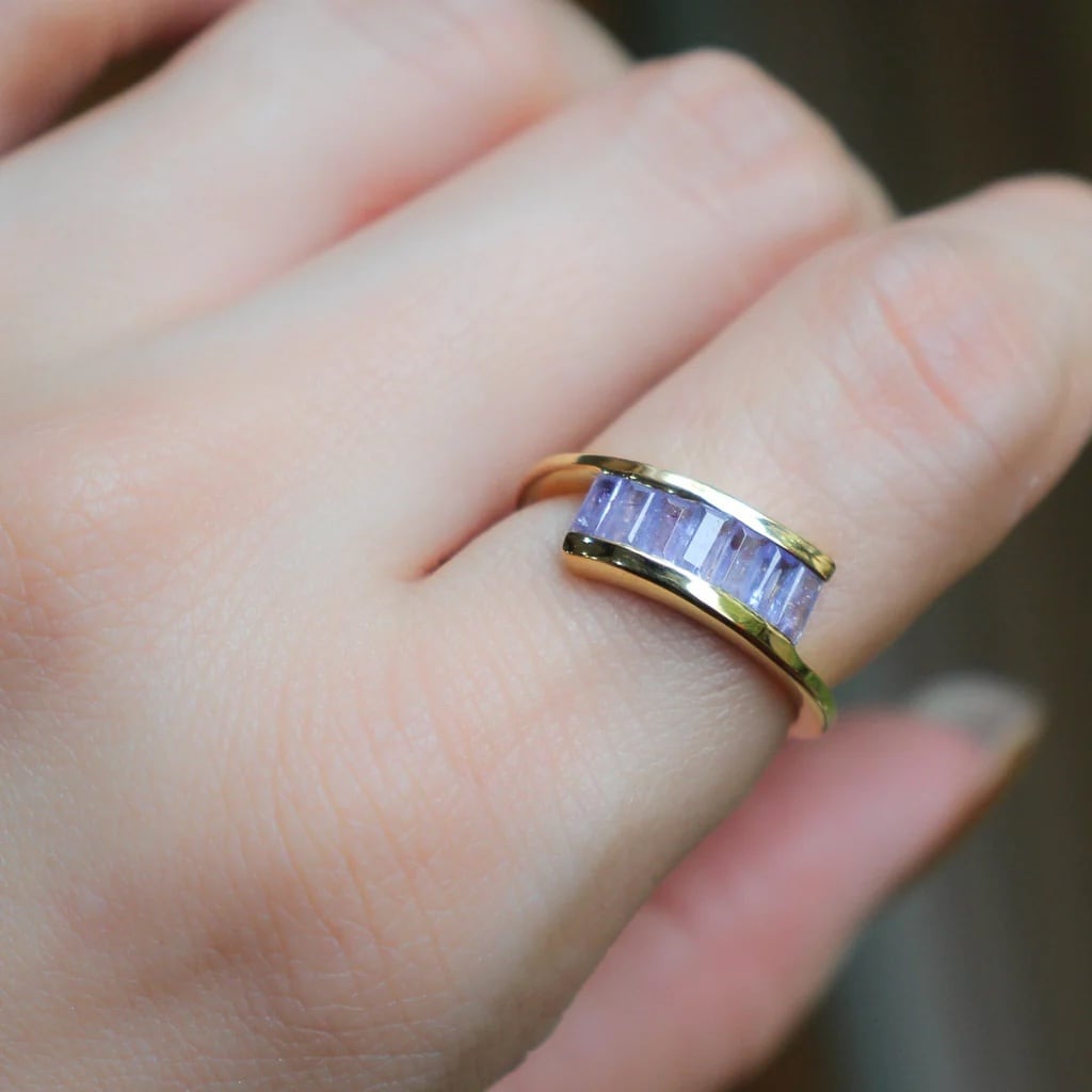 タンザナイトを贅沢に7石使用し、独特のインクリュージョンが上品に輝きます。